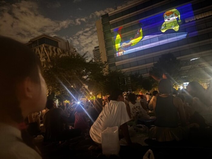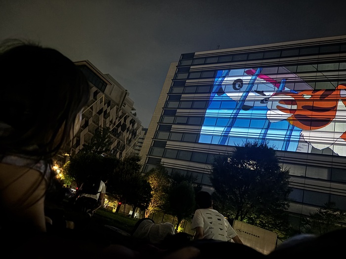 そしてアニメが投影されるビルは、東映アニメーション本社が入っているビルなんです。なんとも趣深い。
