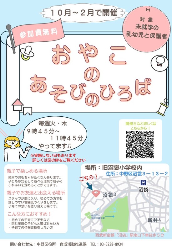 旧沼袋小学校内に「おやこのあそびのひろば」を開設します!