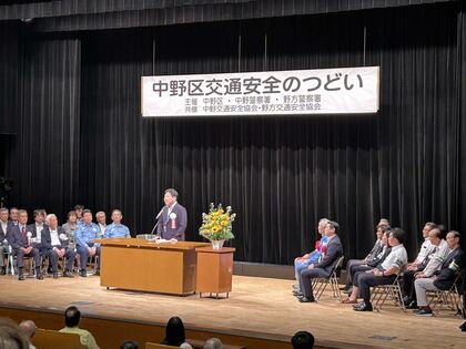 令和7年秋の全国交通安全運動(令和7年9月21日から30日)に先駆け、区民の方へ交通安全運動について再確認してもらうとともに、交通事故防止への意識を高めるため「中野区交通安全のつどい」を実施しました。