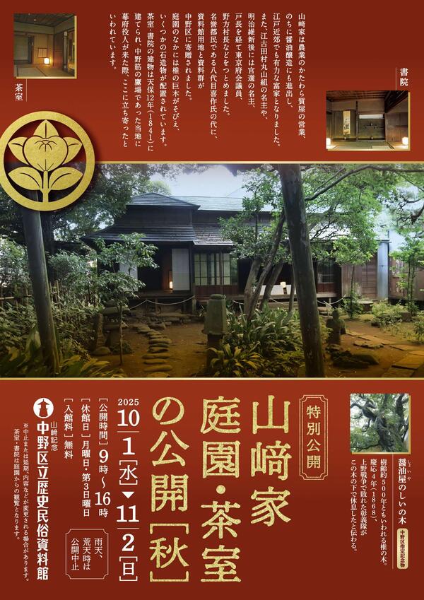 【特別公開】 「山崎家庭園・茶室」の公開(秋)