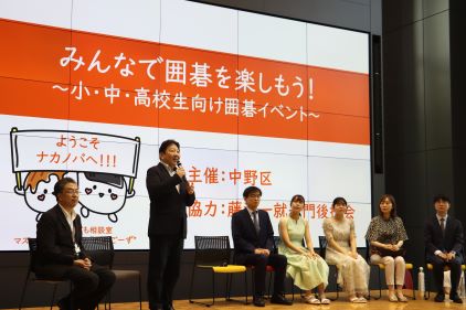 中野区役所1階ナカノバで「みんなで囲碁を楽しもう!~小・中・高校生向け囲碁イベント~」を開催し、初心者向け体験教室やプロ棋士による指導碁会を行いました。